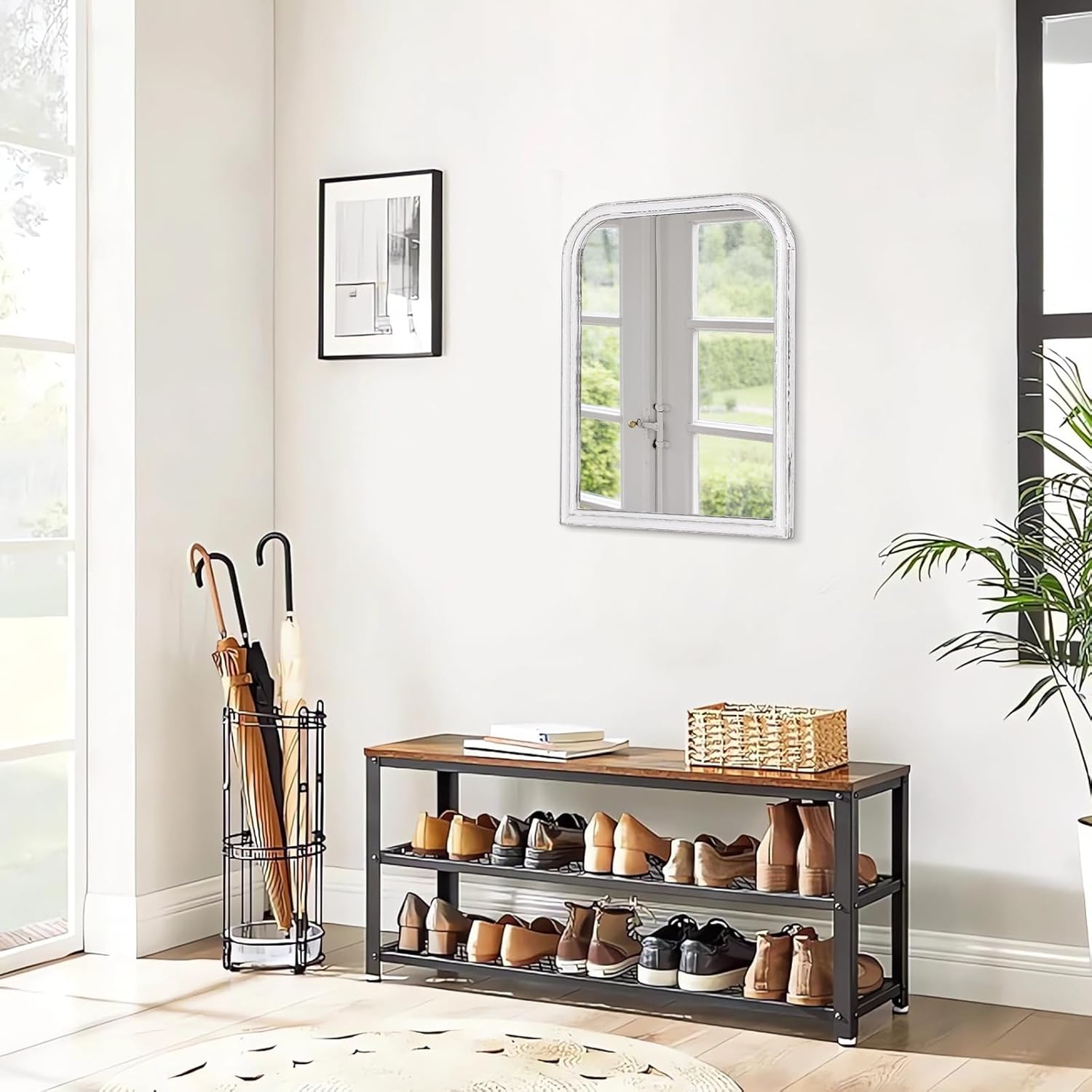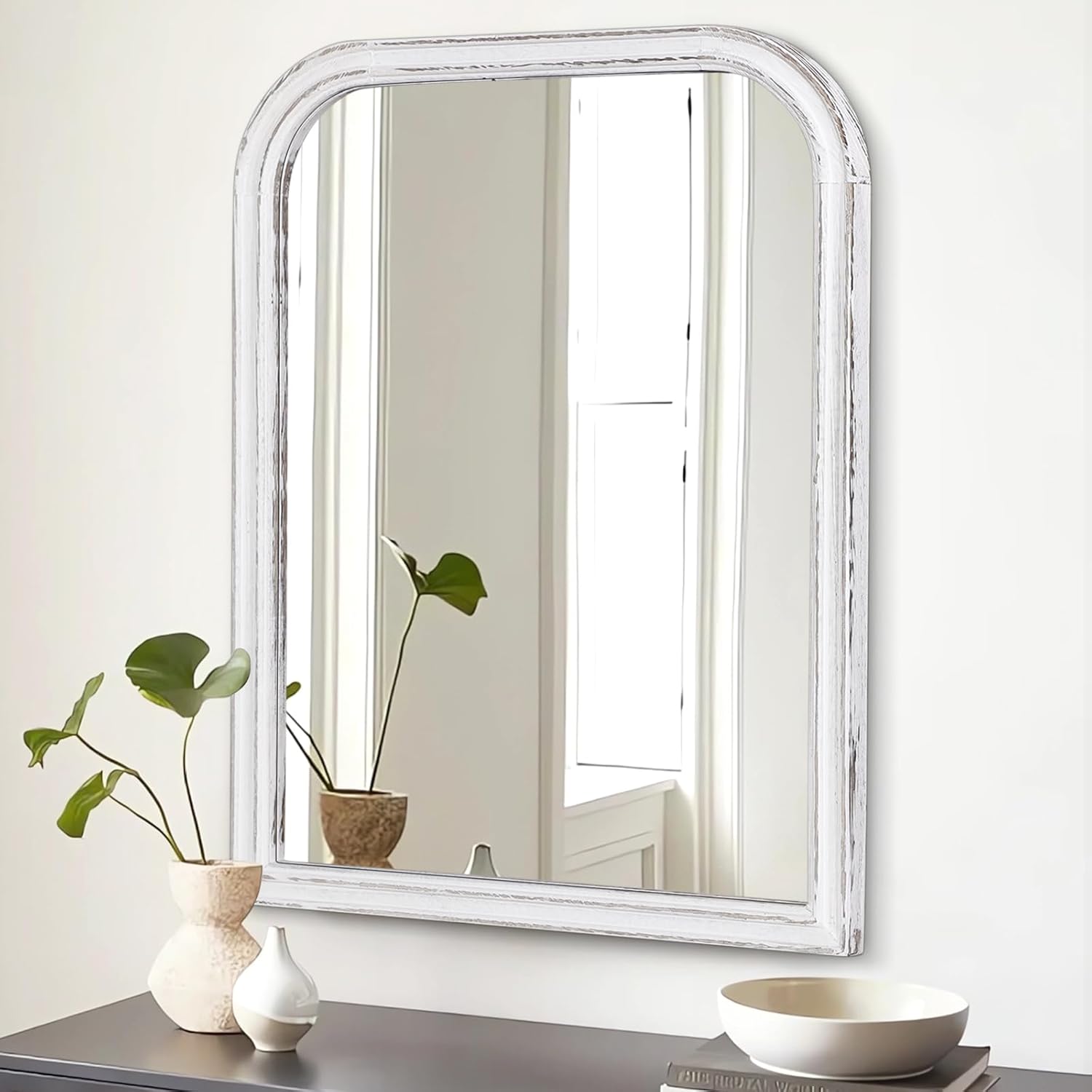 - 【Farmhouse Rustic Wall Mirror】The perfect natural wood color and upper rounded corner under rectangular unique design gives this vanity mirror a modern farmhouse feeling. The farmhouse wood-framed wall mirror brings rustic character to any wall.
